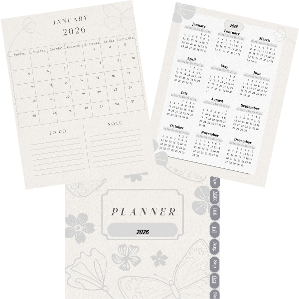 100 left2026 Printable Monthly Planner PDF | Minimal & Elegant Design for Organization & Goal Setting